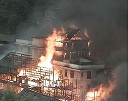 2013年3月,云南麗江古城光義街現(xiàn)文巷突發(fā)火災(zāi),燒毀民房107間;2013年4月,湖南鳳凰古城發(fā)生大火,由于消防通道狹窄無法迅速撲救,幾棟古房屋及其內(nèi)酒吧被徹底燒毀;2017年4月,古城一處街角再次發(fā)生火災(zāi);2013年8月,湖南靖州苗族侗族自治縣一古村寨發(fā)生火災(zāi),共造成58戶、248名村民房屋被燒毀;2013年10月,湖南洪江古商城清代古建筑“曾國藩兵服廠”旁一棟老民居突發(fā)大火,11戶居民無家可歸;2013年12月,洪江古商城建于清末民初的朱志大油號舊址在一次大火中付之一炬,造成22戶67人受災(zāi);頻發(fā)的火災(zāi),不僅給人民生命財產(chǎn)帶來損失,而且許多被燒毀的建筑都有上百年歷史或獨(dú)特民俗,具有較高的歷史文化價值。在廣西三江侗族自治縣,許多古村落近年來頻遭火魔侵襲,有的甚至徹底焚毀。